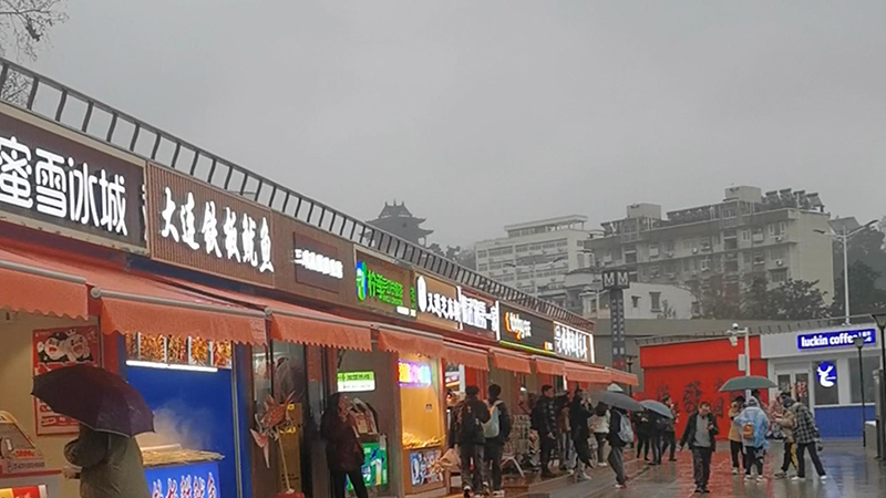 由咱們博客斯定制的赤壁華潤(rùn)啤酒廣場(chǎng)集裝箱式夜市“五一”火爆出圈