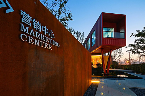設計簡介:  集裝箱銷售處是模塊化建筑的新形勢,東原樂見城項目大樓銷售處采用集裝箱外觀設計,嚴格來說不是原生態集裝箱的改造。采用集裝箱外觀,與普通大樓銷售處建筑區別開來。大樓銷售處的設計師們通過集裝箱模塊化的變化組合等多種變化,反復思考修改,整合景觀和建筑空間結構的多樣性,加上集裝箱生動的顏色和綠色環境,給人以廣闊的空間感和溫暖的氣氛。晴天后,我們可以看到大城市。建筑基于整體箱式鋼結構,通過組合豐富的組合空間。