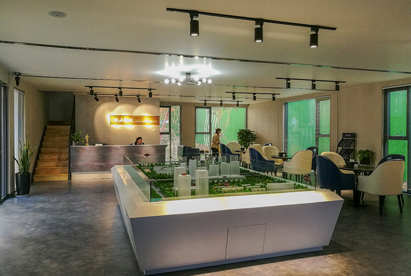 功能區:前臺、沙盤區、接待區、財務室、辦公室、衛生間、會議室