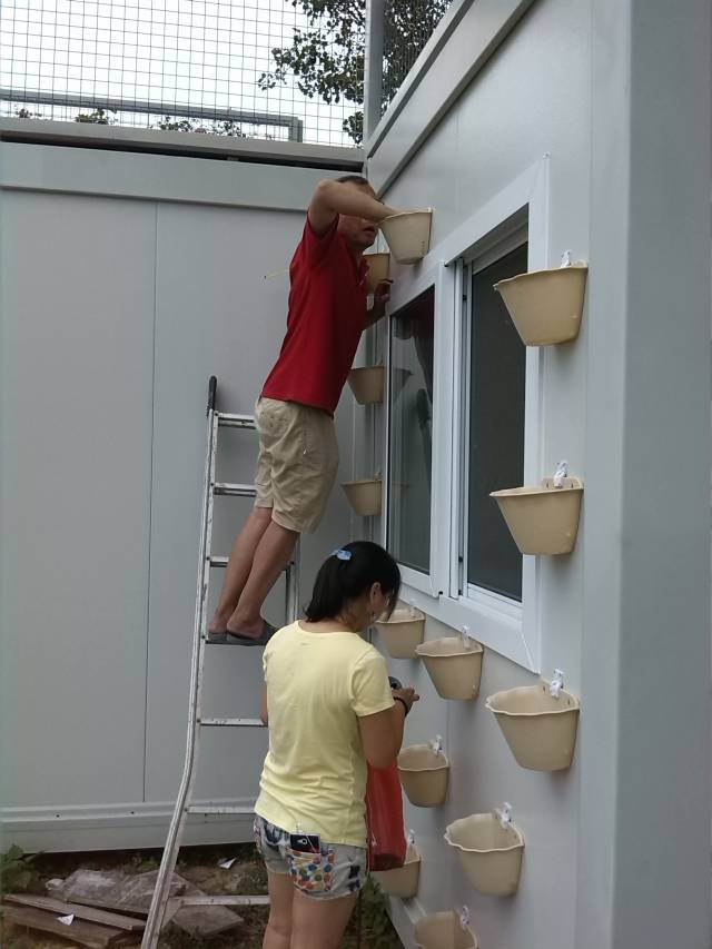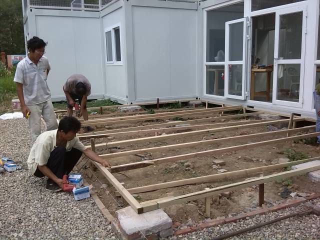 在牛大叔的努力之下,壘地板基和修小路播種,還有掛花、掛架組裝完成后,牛大叔開始了他的集裝箱裝修之旅。