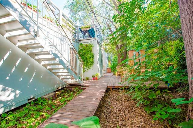 ▼小小的前院,鋪設上了木地板,既美觀又散熱,還可以隨意拼接。