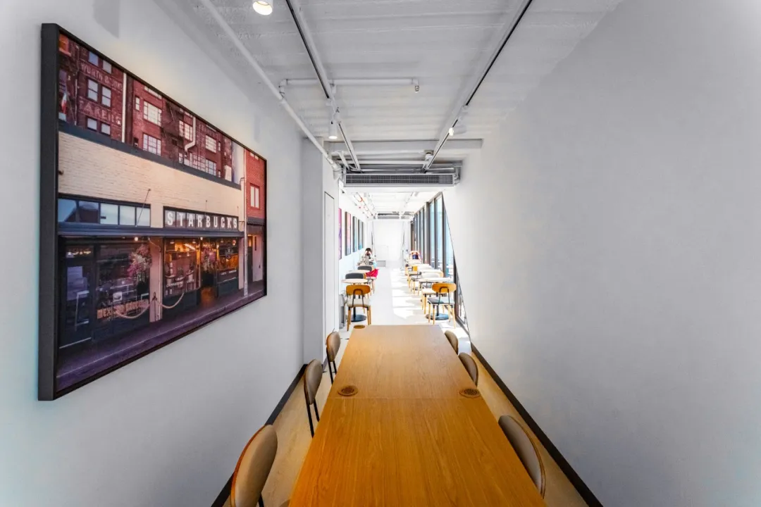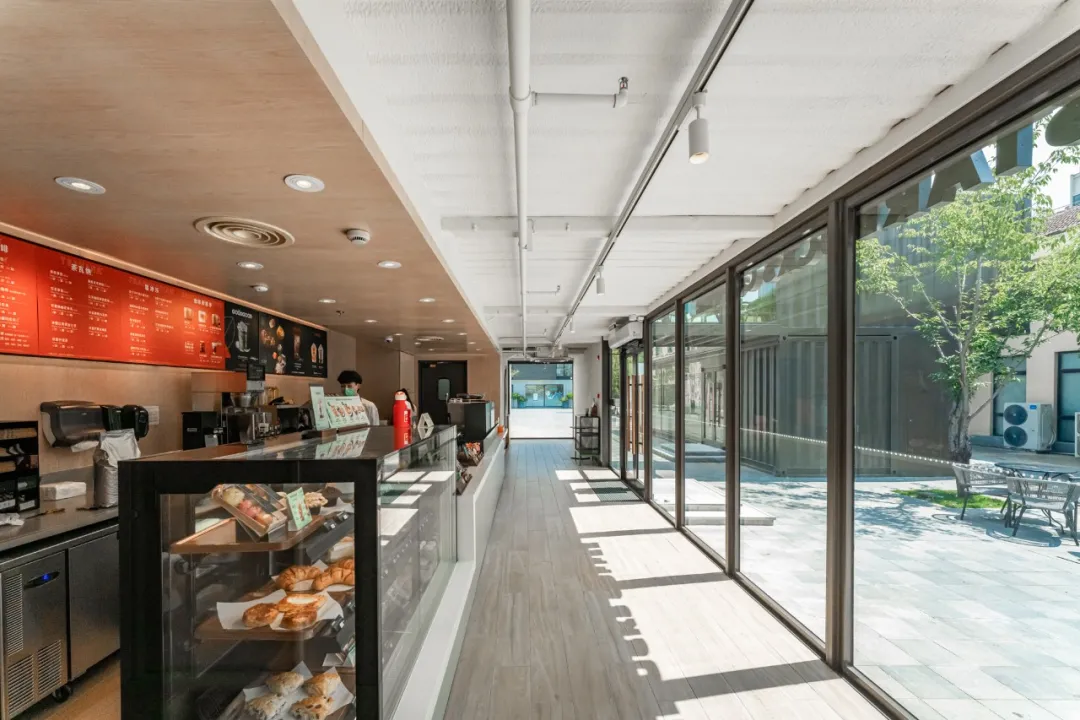集裝箱的盡頭則是一處很適合開會辦公的小型會議室,墻上掛著歷史上第一家星巴克的照片,你可以一窺歷史與現(xiàn)代之間的文化交流,感受漫長歲月的變遷。除了室內(nèi)休息區(qū)和連廊還有兩個室外露臺,等天氣再涼爽一些坐在這里吹吹風(fēng),放下一切煩擾,靜靜地望著藍天白云,獨享這一刻的安逸與靜謐。